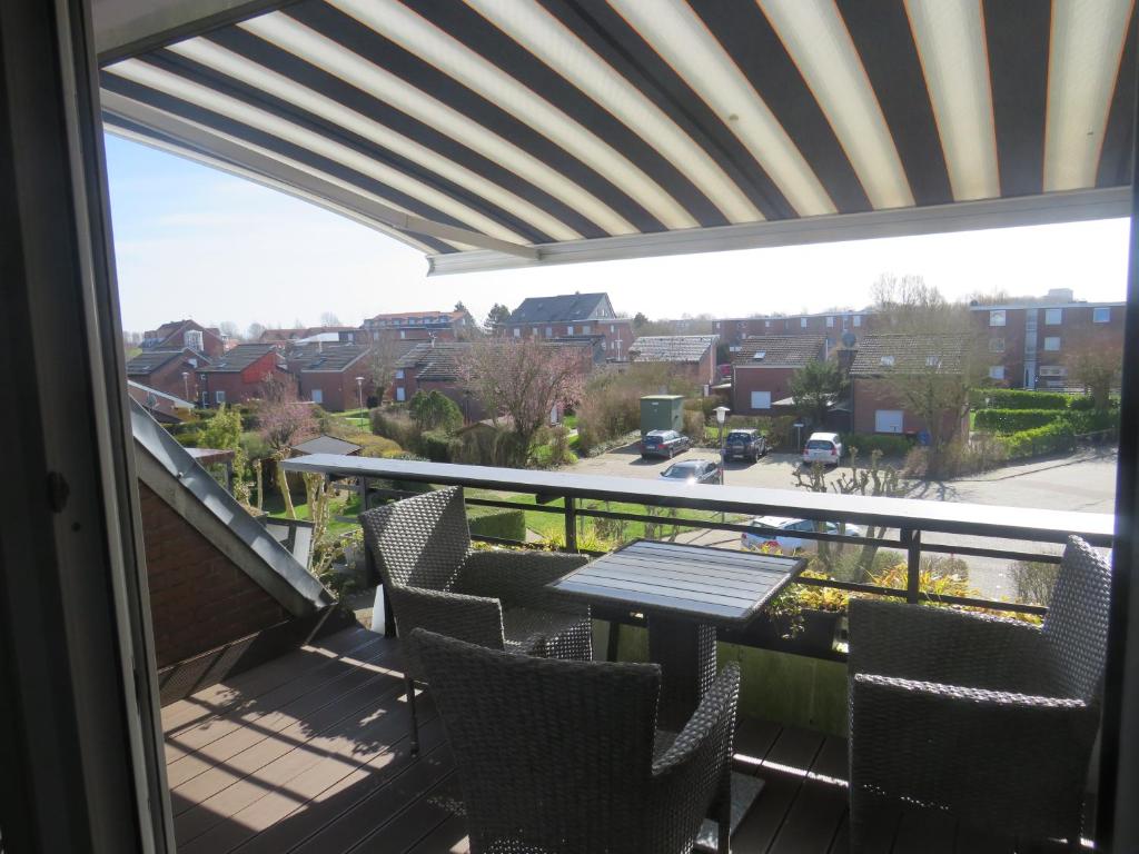 Geeignet für Familien Wir freuen uns über das Interesse an unserer renovierten und zum größten Teil mit neuen und modernen Möbeln eingerichteten Zweizimmer-Insel (41qm) in der 2. Etage eines Terrassenhauses. Der 12 qm große Südbalkon mit dem Blick auf den Deich und das eingewachsene und gepflegte Grundstück mit Gartenanlage, lädt zum entspannen ein. Der Balkon ist mit einer hochwertigen Markise, modernen Möbeln einschl. farblich passenden Auflagen, Elektrogrill, einschl. zusätzlichem Tisch, bepflanzten Blumenkübeln sowie jahreszeitlich bepflanzten und wasserspeichernden Blumenkästen ausgestattet. Die wärmespeichernden Wände seitlich des Balkons und die große Markise laden auch bei nicht ganz sommerlichen Temperaturen sowie in den Abendstunden zum Aufenthalt ein. Von den frühen Morgenstunden bis in den späten Nachmittag können Sie im Schutz der Markise relaxen. Die Wohnung befindet sich in der Friesenhörnsiedlung, in einem ruhigen Haus, dessen Wohnungen hauptsächlich von Eigentümern genutzt werden. Zur Wohnung gehört ein PKW-Stellplatz. Unterstellmöglichkeiten für Fahrräder sind am Haus vorhanden.