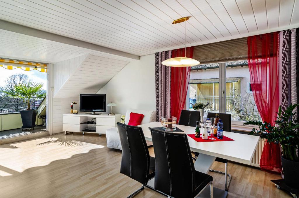 Die Ferienwohnung an der Bodenseetherme erwartet Sie mit einer Terrasse in Überlingen in Baden-Württemberg. Die Unterkunft befindet sich 12 km von Mee