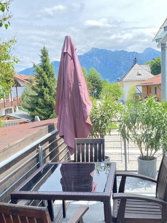 Hallo Ich freue mich sehr Sie im schönen Füssen Willkommen zu heissen Die Wohnung liegt nur wenige Gehminuten vom Stadtzentrum und auch Zug und Bus Bahnhof entfernt Ein REWE Supermarkt Drogerie Fussgängerzone Altstadt ist in 2 Gehminuten für Sie erreichbar Auch steht Ihnen das grosse Sportstudio Füssen mit allen Aktivitäten /Sauna KOSTENFREI zur Verfügung Zur Fewo haben Sie eine schöne Terrasse mit Bestuhlung Sonnenschirm mit schönen Bergblick