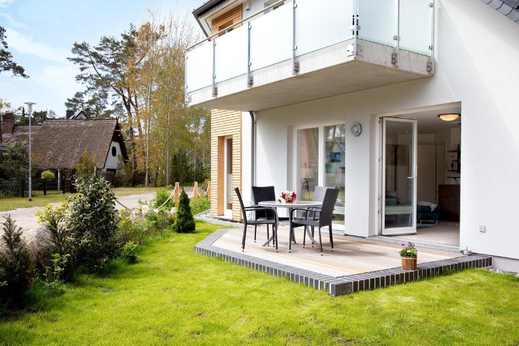 Genießen Sie die unglaubliche Lage: Im Bademantel an den feinsandigen Ostsee-Strand direkt hinter dem Ferienhaus: vorbei an Windflüchtern, Heckenrosen und Strandhafer. Die zwischen 90 und 100 m2 großen, Superior-Ferienwohnungen begeistern durch ihren Mix aus Eleganz und Gemütlichkeit. Bodentiefe Fernster fluten die Räume mit Sonnenlicht. Das großzügige Wohn- und Esszimmer besticht mit dezenten Linien und hellen Naturholz-Möbeln. Sessel und Couches aus hochwertigem Leder garantieren gemütliche Stunden: ob beim Knistern des Kaminofens, einem spannenden Buch bei einem Glas Wein, beim Spiel mit der ganzen Familie oder vor dem großzügigen TV. Perfekt in den Wohnraum integriert und das kommunikative Zentrum des Raumes ist die moderne und voll ausgestattete Küchenzeile mit elegantem Tresen, Barhockern und massivem Esstisch. Die Wohnungen verfügen jeweils über eine eigene Terrasse oder (falls im OG gelegen) über je zwei geräumige Balkone: Hier können Sie Ihren Urlaubstag bei einem sonnigen Frühstück starten oder zum Sonnenuntergang ausklingen lassen. Das Hauptschlafzimmer bietet mit bequemem Doppelbett, großem TV, Sideboard und Kleiderschrank ein exquisites Refugium.