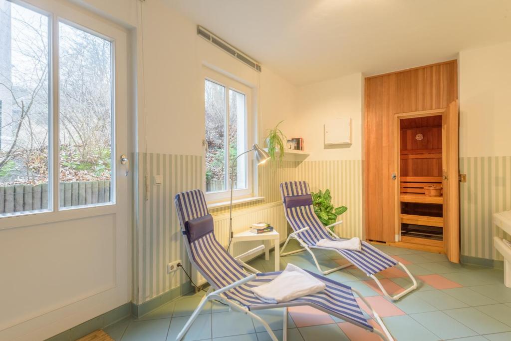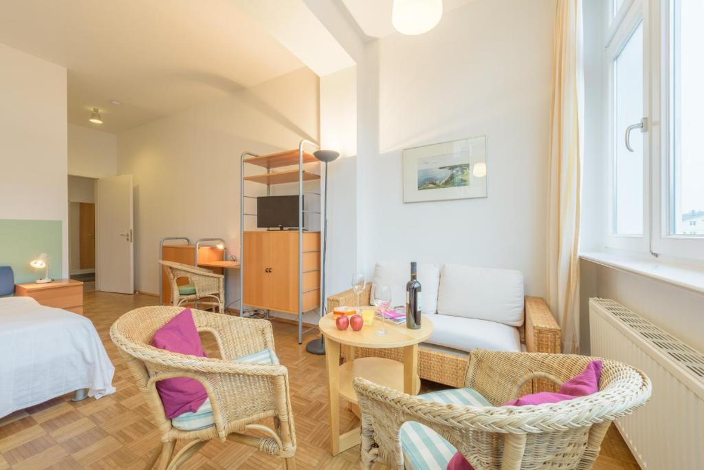 Nur 250 m von der Seebrücke Sellin entfernt erwarten Sie diese geräumigen Apartments in zentraler Lage an der berühmten Wilhelmstraße. Freuen Sie sich auf eine Sauna, Grillmöglichkeiten und einen Garten mit Liegestühlen. Das Dünenhaus Sellin ist in einer traditionellen Villa untergebracht und bietet helle und moderne Apartments mit hellen Holzmöbeln. WLAN ist verfügbar und einige verfügen über einen Balkon, eine Terrasse oder einen gemütlichen Kamin. Die Apartments verfügen über eine Küche mit Küchenutensilien, in der Sie Ihre eigenen Mahlzeiten zubereiten können. Kaffeemaschine und Wasserkocher sind selbstverständlich. Das große Apartment verfügt zudem über einen Geschirrspüler und eine Mikrowelle. Zahlreiche Cafés und Restaurants laden im Umkreis von 500 m zu einem Besuch ein. Verbringen Sie den Tag am Strand (250 m) oder erkunden Sie nahe gelegene Sehenswürdigkeiten wie die 7 km entfernte Granitz Hunting Lodge. Der Bahnhof Ostseebad Binz liegt 13,5 km vom Dünenhaus Sellin entfernt.