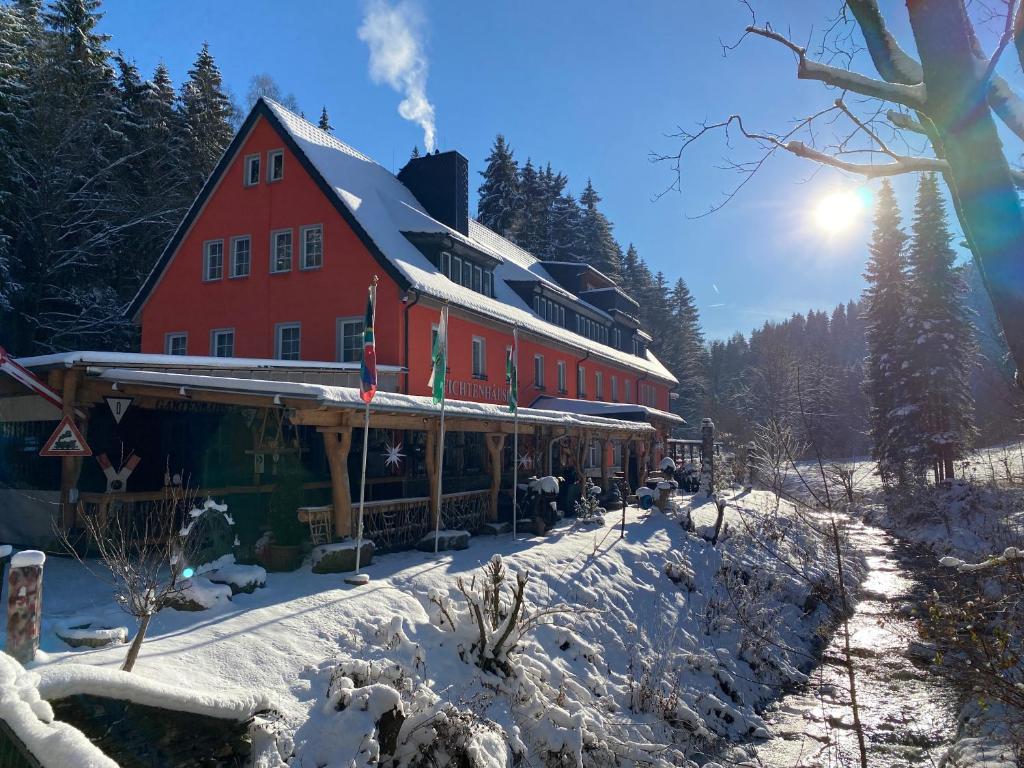 Dieses familiengeführte Hotel und Restaurant begrüßt Sie in Kühberg im oberen Erzgebirge. Das Erlebnishotel & Restaurant Fichtenhäusel am Pöhlagrund verfügt über einen eigenen Wellnessbereich mit einer Sauna, einem Badefass, einer Infrarotkabine und einem Massagestuhl. Das Erlebnishotel & Restaurant Fichtenhäusel am Pöhlagrund ist charmant im traditionellen Erzgebirge mit viel Holz eingerichtet. Sie wohnen in einzigartiger Lage am Rande eines Waldes und des Flusses Pöhlbach. Alle Zimmer verfügen über einen Flachbild-TV und ein eigenes Bad. Ein festgelegtes Telefon und kostenfreies WLAN sind in jedem Zimmer vorhanden. Das Erlebnishotel & Restaurant Fichtenhäusel am Pöhlagrund verfügt auch über ein großes Restaurant für bis zu 90 Personen, einen Vintage-Frühstücksraum für bis zu 45 Personen und eine Sonnenterrasse mit Lounge Pöhlbach für bis zu 100 Personen. Das Restaurant verfügt über eine Modelleisenbahn, die die Getränke zu Ihrem Tisch transportiert. Dies ist ein idealer Ausgangspunkt für Wanderungen, Motorradtouren und Sportautos. Abstellmöglichkeiten für Motorräder, Fahrräder und Skiausrüstung stehen zur Verfügung.