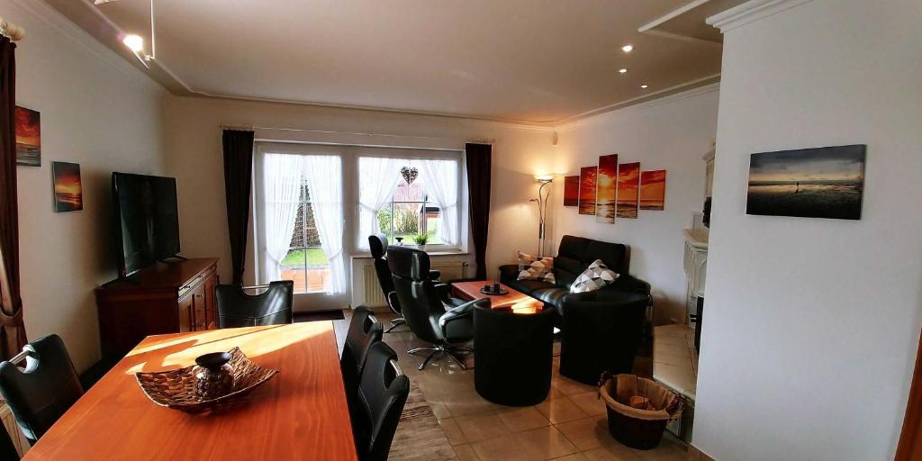 Das freistehende Haus "Watt´n Hus" mit einer Wohn- und Nutzfläche von circa 125 qm wurde im Herbst 2017 geschmackvoll modernisiert. In allen Schlafräumen wurden schicke Vinyl-Böden verlegt. Ebenso wurde ein Wellness-Bereich neu geschaffen. Moderne Möbel zum Wohlfühlen verleihen dem Haus die neue Charakteristik. Alle Räume verfügen über Rollläden mit elektrischem Antrieb. Der Innenbereich bleibt Nichtrauchern vorbehalten. <br/> <br/>Sie betreten das Haus durch die große Diele mit Einbauschrank und weiterer Garderobe. Von hier gelangen Sie in den Wohn-Essbereich mit hochwertiger moderner Einbauküche mit allen zeitgemäßen Elektrogeräten, Geschirr und allem was in die Küche gehört. Daran schließt sich der Essbereich mit Platz bis zu 6 Personen mit neuen Leder-Freischwinger-Stühlen und großem Esstisch an.<br/> <br/> Der Wohnbereich lädt durch Leder-Relax-Sessel und eine Relax-Ledercouch zum Verweilen vor dem Kachel-Kamin ein. Ein 55-Zoll-Flachbildschirm ist ebenso wie eine neue moderne Kompaktanlage vorhanden. Vom Wohnzimmer aus gelangen Sie auf die Terrasse und in den Garten.<br/><br/> Ein geräumiges Schlafzimmer in Massivholz Mahagoni Ausführung und das Doppelbett mit erhöhter Matratze beschert Ihnen im EG einen lauschigen Schlafplatz. Daneben befindet sich das sehr geräumige Badezimmer mit großem Spiegelschrank, Dusche, WC und Bidet. Ein Sitzhocker und ein Föhn sind ebenfalls vorhanden.<br/><br/> In der durch die Seiteneingangstüre begehbaren Fahrrad-Garage können Sie ihre mitgebrachten Untensilien wie Fahrräder oder Kinderwagen abstellen. Für die Wäsche stehen eine Waschmaschine und ein Trockner abseits der Wohnräume bereit.<br/> <br/> Die breite nicht zu steile Treppe führt in das Obergeschoss. Die Treppe können Sie bei Bedarf mit einem Treppengitter sichern. Von der oberen Diele gelangen Sie in das zweite große Schlafzimmer, welches sehr modern mit einem neuem elektrisch verstellbaren großen BOX-Springbett eingerichtet ist. Ein Babybettchen findet hier auch seinen Platz. <br/> <br/> Das ebenfalls neu eingerichtete Kinderzimmer mit 2 Einzelbetten ist sehr geräumig und verfügt über ein zweites neuwertiges TV-Gerät und eine „chill out area“ für die jüngeren Gäste.<br/> <br/> Auf der gegenüber liegenden Seite lädt der Wellness-Bereich zur Entspannung ein.<br/> Die neue hochmoderne Biosauna verfügt als Vollspektrum über eine Infrarot-Wärmekabine mit Lichttherapie und Sternenhimmel über Platz bis 4 Personen und sorgt in besonderer Weise für Ihr Wohlbefinden. Bei entspannenden Klängen können Sie die wohltuende und gesundheitsfördernde behagliche Wärme genießen und anschließend auf den ebenfalls neuen hochwertigen Relaxliegen entspannen. Aus einer kleinen Bücherauswahl finden Sie den Lesestoff hierfür. Das Badezimmer mit Dusche und WC befindet sich gleich neben dem Wellness-Bereich.<br/> <br/> Außenbereich: Im vorderen Teil des Außenbereiches ist die große Auffahrt mit Platz für 2 PKW. Durch ein großes Tor können Sie die Auffahrt zur Straße hin abschirmen. Das hintere Teil des Anwesens ist durch blickdichte Holzzäune von der Straße nicht einsehbar und durch Türen auf beiden Seiten des Gartens abschließbar. Die abdeckbare Sandkiste und die Schaukel (neu ab Frühjahr 2018) werden die kleinen Urlauber schnell für sich entdecken (Sandspielzeug ist in einer Spielzeugkiste vorhanden). Aus dem neuen Strandkorb können Sie die Blicke schweifen lassen oder es sich auf der Terrasse unter der Markise mit elektrischem Antrieb oder dem daneben befindlichen überdachtem Teil auf den modernen geschmackvollen Terrassenmöbeln gemütlich machen. Falls Ihnen der Sinn nach Grillen steht, bitte gerne. Der WEBER Master Touch Grill macht Laune auch mal draußen das Essen zuzubereiten.<br/> <br/> Für die Dauer Ihres Aufenthaltes verfügen Sie natürlich auch über freies WLan.<br/> <br/> Sofern Sie mit kleinen Kindern den Urlaub verbringen stehen Ihnen 2 Hochstühle und auch ein Treppengitter zur Verfügung. Der Inhalt der Spielkisten wird sicherlich die Neugier Ihrer Kleinen wecken. Kindgerechtes Geschirr und Besteck finden Sie in der Küche.<br/> <br/>Sind Sie in Begleitung Ihres Hundes, so halten wir für Sie einen Futter- und Trinknapf bereit.<br/> Damit sich Ihr nasser Vierbeiner schnell wieder wohlfühlt können Sie gerne die bereitliegenden Hundehandtücher im Durchgang zur Garage abtrocknen.<br/> <br/> Wir hoffen, Sie finden Gefallen und stimmen zu - „Watt‘n Hus“!<br/> <br />