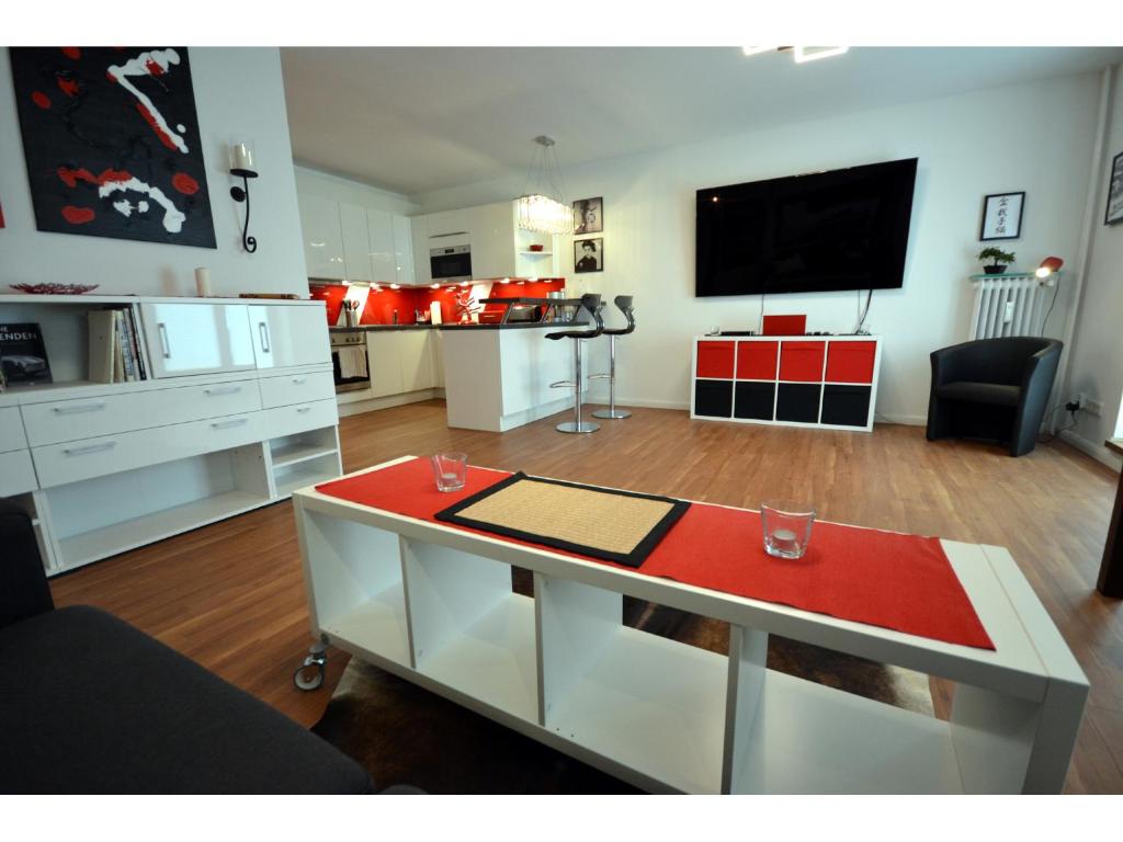 Dieses Apartment mit 1 Schlafzimmer und 1 Bad verfügt über einen Flachbild-Sat-TV und einen Blu-ray-Player.