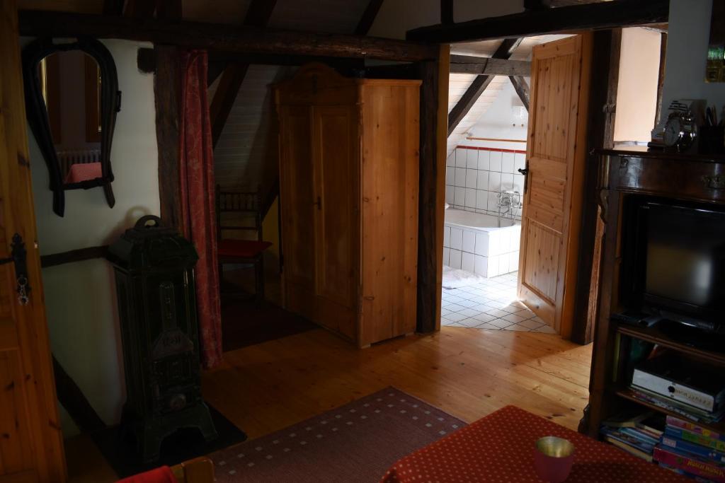 Die historische Fachwerkschmiede wurde mit viel Liebe zum Detail als Ferienhaus renoviert und hat ihren ursprünglichen Charme von außen wie im Gebäude behalten. In der kalten Jahreszeit können Sie am Kaminfeuer, im Sommer im überdachten Außenbereich den Tag ausklingen lassen. Genießen Sie die Dorfidylle oder nutzen Sie das vielfältige Angebot der nahegelegenen Städte Erfurt und Weimar mit ihren Sehenswürdigkeiten und kulturellen Highlights. Kinder können im Innenhof geschützt spielen, unsere Brieftauben oder den Kater füttern.