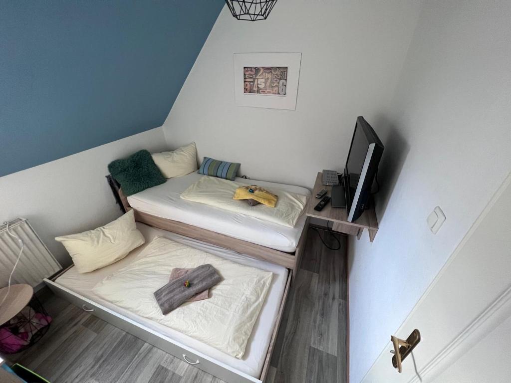 Mit einem Garten, einer Gemeinschaftslounge und einer Terrasse bietet die Unterkunft Ferienhaus am Mühlgraben Übernachtungsmöglichkeiten in Thale mit kostenlosem WLAN und Bergblick. 7 km von der Sehenswürdigkeit Hexentanzplatz entfernt gelegen bietet die Unterkunft Grillmöglichkeiten und kostenlose Privatparkplätze. Diese Ferienwohnung besteht aus 3 Schlafzimmern, einem Wohnzimmer, einer voll ausgestatteten Küche mit einem Kühlschrank und einer Kaffeemaschine sowie 1 Badezimmer mit einer Badewanne und einem Haartrockner. In dieser Ferienwohnung werden Handtücher und Bettwäsche angeboten. In der Nähe können Sie Wandern. Die Sehenswürdigkeit Hexentanzplatz liegt 7 km von der Unterkunft Ferienhaus am Mühlgraben entfernt, während die Sehenswürdigkeit Harzer Bergtheater 7,4 km von der Unterkunft entfernt ist. Der nächstgelegene Flughafen ist der Flughafen Leipzig/Halle, 116 km von der Unterkunft Ferienhaus am Mühlgraben entfernt.