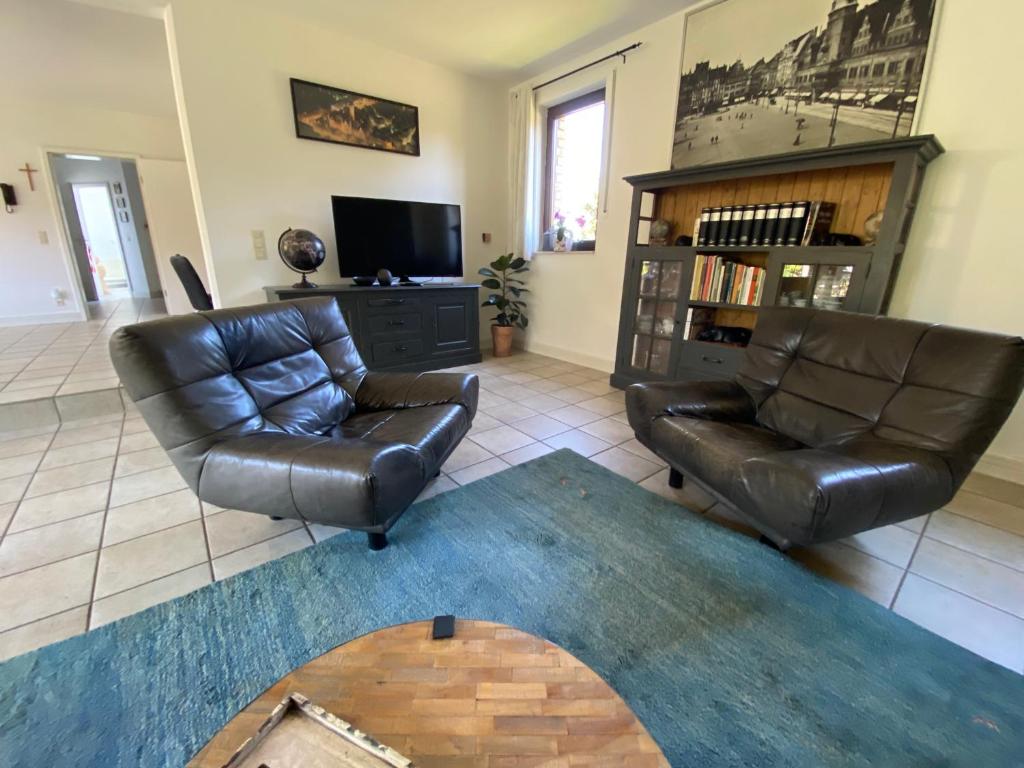 Das Ferienhaus befindet sich im Südwesten von Leipzig unweit des Neuseenlandes. Das Objekt überzeugt mit schlichter Eleganz und einer Ausstattung die einem alles bietet was man braucht. Abseits vom Trubel der Stadt ist der Ortsteil Hartmannsdorf mit seiner dörflichen Ruhe in städtischer Umgebung, der optimale Standort für Ihren Urlaub. Hier finden Sie einen 145 m² großen idyllischen Rückzugsort mit drei Schlafzimmern, mehreren Bädern und einem gemütlichen Wohnzimmer. In diesem Haus findet jeder sein Plätzchen, zudem gibt es ausreichend Raum für gemütliche Abende mit Familie oder den Freunden, sogar mit der Möglichkeit musikalischer Untermalung am bereitstehenden Klavier. An die offene Wohnküche mit modernem Induktionskochfeld schließt sich ein edler Essbereich mit Marmortisch an, wie gemacht für ein festliches Essen in geschmackvoller Atmosphäre. In den warmen sommerlichen Monaten ist die Terrasse nicht nur zum Sonnenbad geeignet, sondern auch zu heiteren Grillabenden in entspannter Runde. Genießen Sie die Ruhe der Umgebung, die einlädt zum Fahrradfahren, für Ausflüge an den See, zum Vögel beobachten und für all die Sachen, die Sie endlich machen wollten.