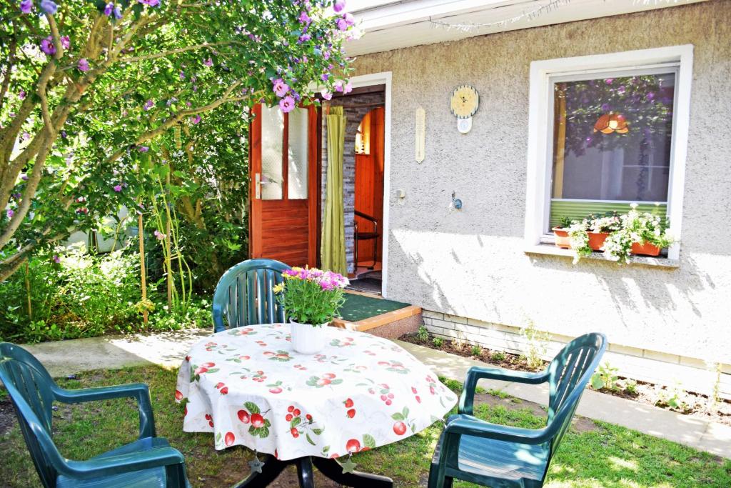 Das F-1016 Haus Maiglöckchen FeWo 02 Terrasse, Frühstück liegt 600 m von der Bernsteinpromenade im Ostseebad Göhren in Göhren entfernt und bietet Unte