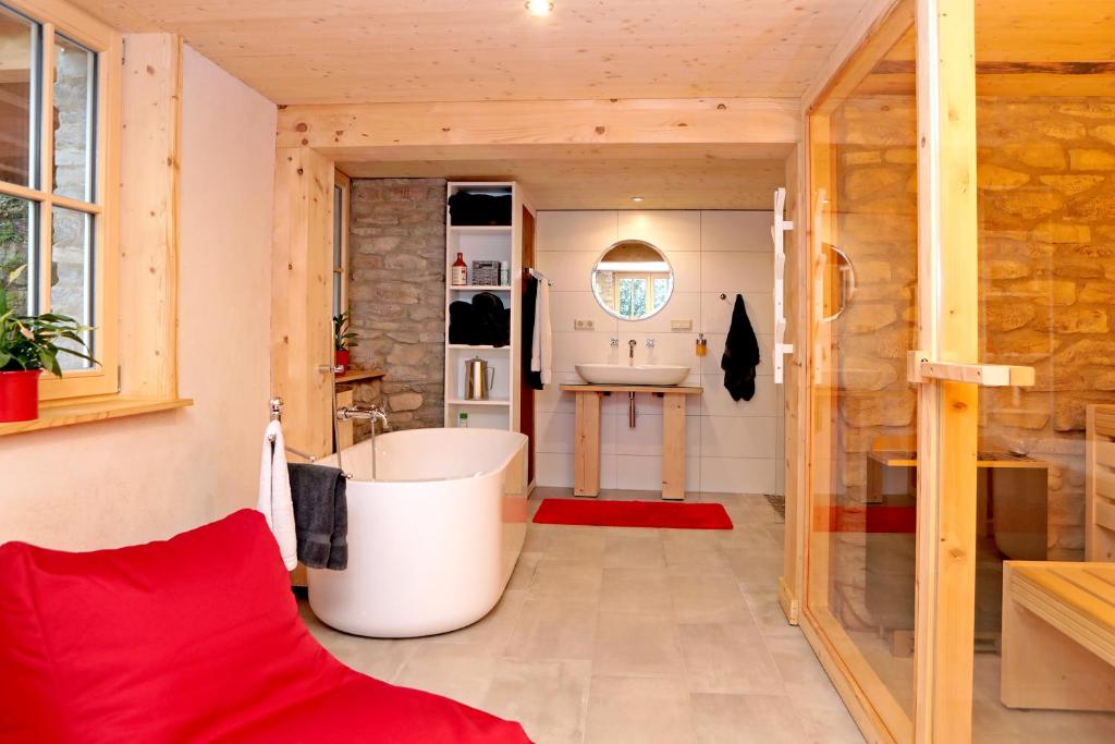 Im Ferienhaus Haldenmühle - traumhafte Lage mitten in der Natur mit Sauna haben Sie Zugang zum hoteleigenen Spa- und Wellnesscenter mit einer Sauna. Freuen Sie sich auf einen Garten mit Grillmöglichkeiten. In der Nähe können Sie wandern und Rad fahren.