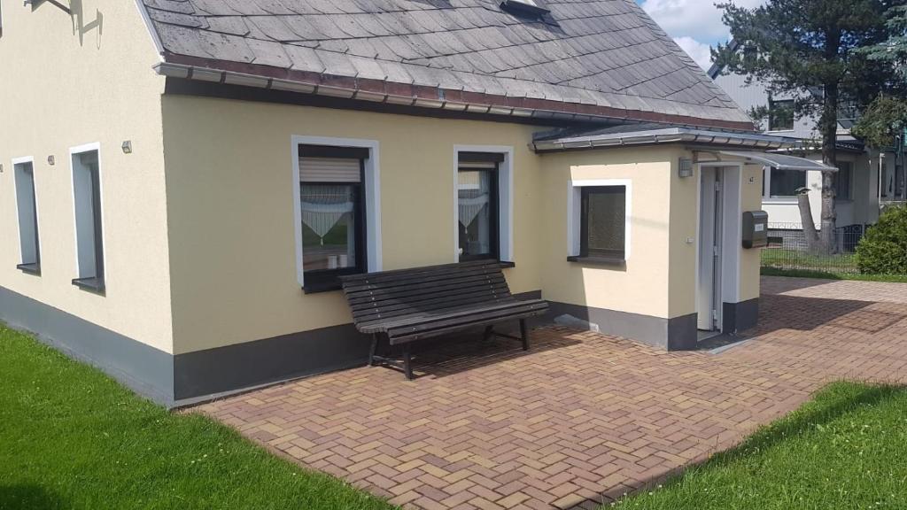 Das Ferienhaus-Kühnhaide im Erzgebirge bietet eine Terrasse. Entspannen Sie im Garten oder in der Gemeinschaftslounge.