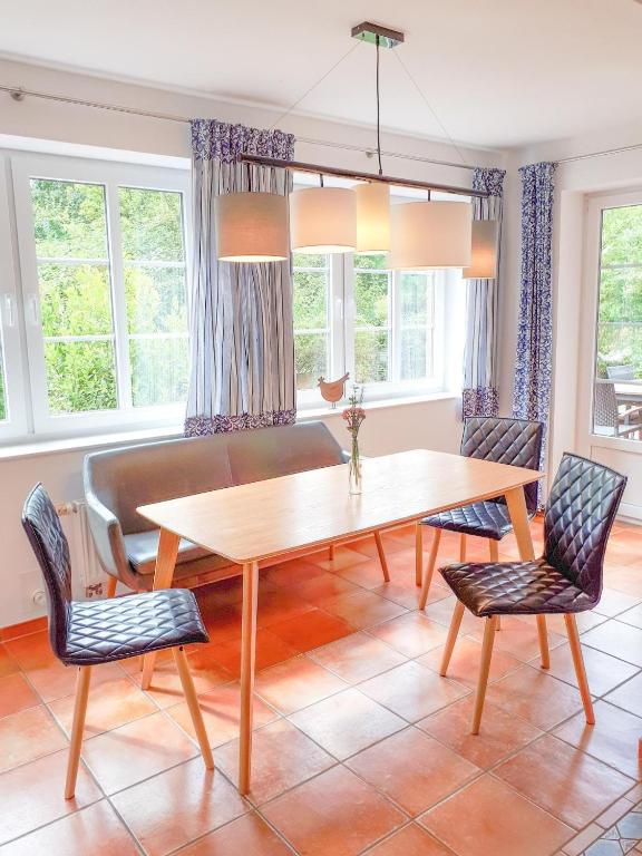 Die Unterkunft verfügt über eine Küche mit einem Geschirrspüler, einem Backofen und einem Kühlschrank. Ein TV ist ebenfalls vorhanden. Zu den weiteren Einrichtungen im Ferienhaus-Lichtblick gehört ein Kinderspielplatz.