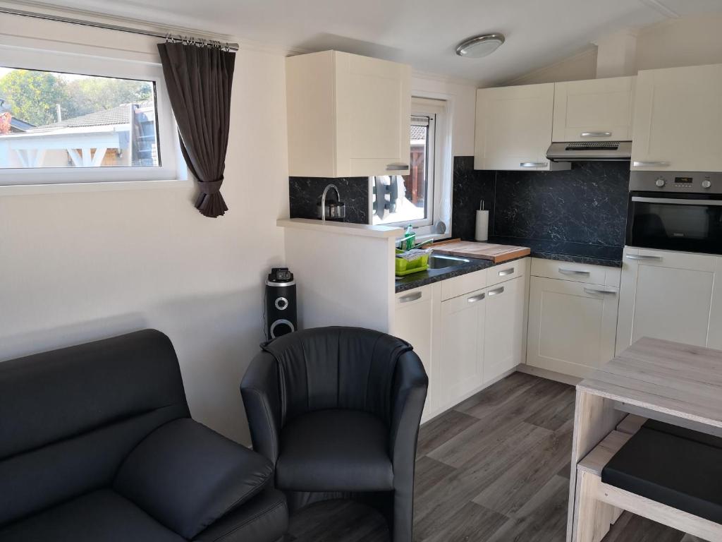 Dieses klimatisierte Chalet verfügt über 2 Schlafzimmer, einen Flachbild-Kabel-TV, einen Essbereich und eine Küche mit einem Geschirrspüler und einer Mikrowelle. Handtücher und Bettwäsche werden gestellt.