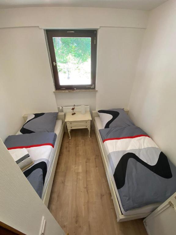 Das Ferienhaus liegt in ruhiger Lage im Wochenendgebiet von Hilders. Die großzügige 60qm große Wohnung bietet Platz für vier Personen (Schlafzimmer mit Doppelbett 180x200cm und ein weiteres mit zwei Einzelbetten 90x200cm), Bad mit Dusche und WC, Wohnbereich mit Couchecke,Radio und TV, einer komplett eingerichteten Küche und Essbereich. Die großzügige Terrasse bietet eine wunderschöne Aussicht über Hilders, die Wasserkuppe und die Milseburg. Der große Garten lädt mit Gartenmöbeln, Grill, Spiel und Liegewiese zum Verweilen ein. Für unsere kleinen Gäste steht auch eine Schaukel und Sandkasten bereit. Parkplätze sind direkt am Haus. Geeignet für Familien-, Wander-, und Skiurlaub. Haustiere auf Anfrage erlaubt.