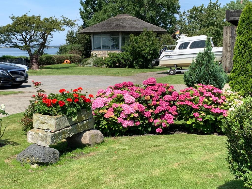 Drei Ferienwohnungen direkt am Wieker Bodden mit Blick auf die Insel Hiddensee. Ein Pavillon mit 16 Sitzplätzen und super Blick auf den Sonnenuntergang über dem Wasser, steht zur Gemeinschaftsnutzung oder kleinen Feierlichkeiten, kostenfrei zur Verfügung