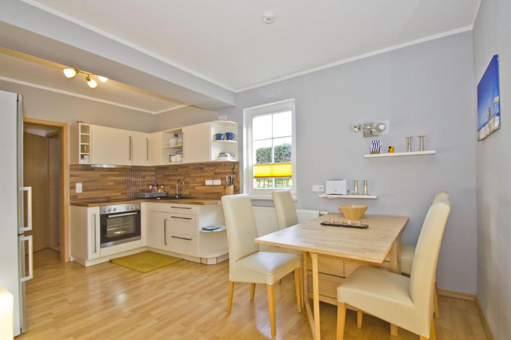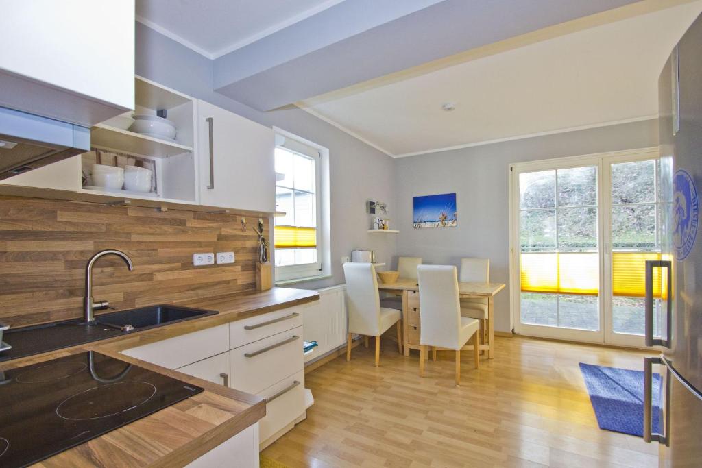 Wohnung Nr. 06 im Haus Seeadler ist 50 m² groß und bietet Platz für bis zu 4 Personen (2 Erwachsene und 2 Kinder bis 14 Jahre). Sie befindet sich im Erdgeschoss und verfügt über einen gemütlichen Wohn- und Essbereich mit offener Küche. Das 1,5-Zimmer-Schlafzimmer verfügt über ein Doppelbett und ein Etagenbett. Hier in Middelhagen können Sie einen tollen und entspannten Urlaub auf Rügen verbringen. Der Wanderweg beginnt direkt vor der Haustür. Von hier aus lässt sich die Hügellandschaft des Mönchguts auf der Insel Rügen wunderbar erkunden. Von oben hat man einen fantastischen Blick über die weitläufige Wiesenlandschaft und den Greifswalder Bodden. Der feinsandige Ostseestrand ist nur wenige Autominuten mit dem Auto oder Fahrrad entfernt. In Lobbe können Sie auf einer Länge von fast 6 Kilometern einen unvergesslichen Strandurlaub genießen. Der weitläufige und breite Badestrand lädt nicht nur zum Baden ein, sondern auch zum Sonnenbaden und Strandburgen bauen. In der Umgebung von Middelhagen finden Sie Cafés und Restaurants sowie Museen und Kirchen. Genießen Sie Ihren Urlaub auf der Insel Rügen. Haus Seeadler ist dafür bestens geeignet.