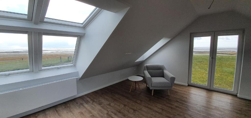 Die Ferienwohnung Landblick erwartet Sie mit einer Terrasse in Emmelsbüll-Horsbüll in Schleswig-Holstein. Die Unterkunft befindet sich 44 km von Husum
