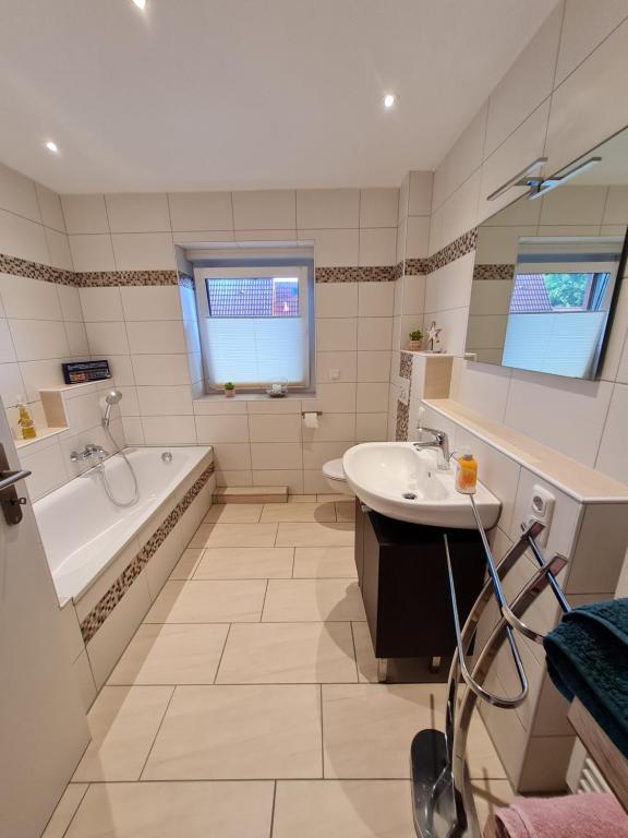 Die Unterkunft Ferienhaus Taucherperle mit Gartenblick befindet sich in Hemmoor, 45 km von der Sehenswürdigkeit Alte Liebe und 39 km von der Sehenswürdigkeit Leuchtturm "Dicke Berta" entfernt. Dieses Ferienhaus hat einen Garten, einen Grill, kostenloses WLAN und kostenlose Privatparkplätze. Dieses Ferienhaus besticht durch einen DVD-Player, hat eine Küche mit einem Kühlschrank, einem Geschirrspüler und einem Ofen, ein Wohnzimmer mit einem Sitzbereich und einem Essbereich, 4 Schlafzimmer und 2 Badezimmer mit einer Dusche und einer Badewanne. Es gibt einen Flachbild-TV mit Satellitenkanälen und einen CD-Player. In dieser Unterkunft gibt es eine Terrasse und einen Kinderspielplatz und Gäste können in der Nähe Fahrradfahren. Die Sehenswürdigkeit Hauptbahnhof Cuxhaven liegt 44 km von der Unterkunft Ferienhaus Taucherperle entfernt, während die Sehenswürdigkeit Joachim-Ringelnatz-Museum 43 km von der Unterkunft entfernt ist.