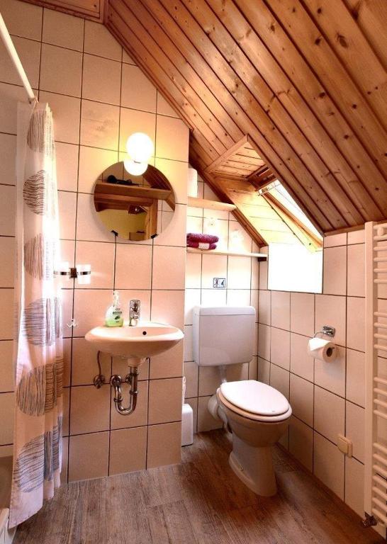 Die Unterkunft umfasst eine Küchenzeile. Ein TV ergänzt die Ausstattung. Ihre Kinder können sich auf dem Spielplatz am Ferienhof-Heidemann auslassen.