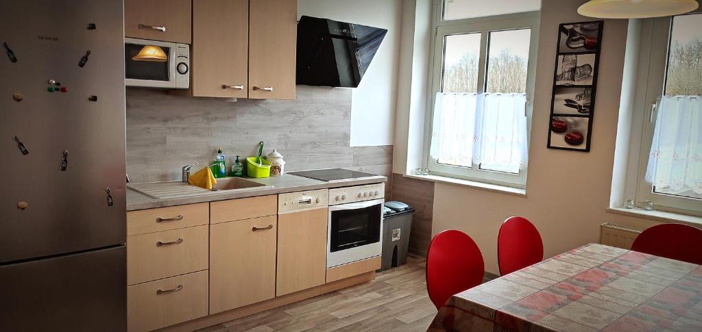 Die Ferienwohnung am Birkenwäldchen liegt 24 km vom Göltzsch Viadukt und 37 km von der Deutschen Raumfahrtausstellung in Plauen entfernt und bietet Unterkünfte mit einer Küche. Hier wohnen Sie 1,2 km von der Festhalle Plauen entfernt und profitieren von einem Tourenschalter.