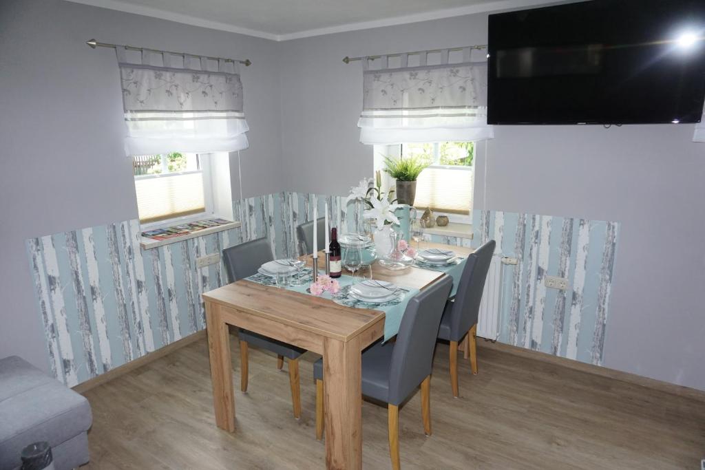 Die Ferienwohnung am Dorfplatz mit Gartenblick bietet Unterkünfte mit einem Balkon und einer Kaffeemaschine, etwa 4,7 km vom Nationalpark Sächsische Schweiz entfernt. Dieses Apartment verfügt über kostenfreie Privatparkplätze, einen Bankautomaten und kostenfreies WLAN. Das Apartment verfügt über 2 Schlafzimmer, 1 Bad, Bettwäsche, Handtücher, einen Flachbild-Sat-TV, einen Essbereich, eine voll ausgestattete Küche und eine Terrasse mit Bergblick. An der Unterkunft steht Ihnen ein Grill zur Verfügung und in unmittelbarer Nähe des Apartments können Sie Rad fahren. Die Festung Königstein liegt 6 km von der Ferienwohnung am Dorfplatz entfernt und das Schloss und Park Pillnitz erreichen Sie nach 27 km. Der nächstgelegene Flughafen ist der 54 km von der Unterkunft entfernte Flughafen Dresden.