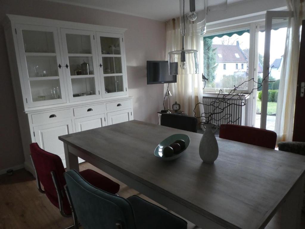 Die neu renovierte Wohnung bietet Platz für 1 bis 3 Personen. Sie verfügt über eine voll ausgestattete, hochwertige kleine Küche, ein großes Wohn- Esszimmer mit TV, CD-Player, Radio, ein Schlafzimmer mit Doppelbett, für die 3. Person 1 Zustellbett und ein kleines Bad mit ebenerdiger Dusche. Das WLAN und den Parkplatz vor dem Haus können Sie kostenfrei nutzen. Zwei Terrassen bieten einen schönen Blick in den großen Garten. Auch Kinder sind in unserer Ferienwohnung herzlich willkommen! Bitte beachten Sie, dass keine Haustiere erlaubt sind.