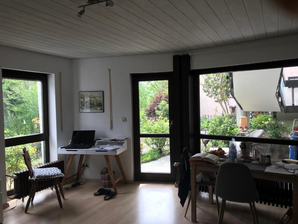 Das moderne Zwei-Zimmer-Appartement (55 Quadratmeter) gehört zu einem Einfamilienhaus und verfügt über einen separaten Eingang sowie eigener Terrasse mit Zugang zum Garten. Die Lage am Rande der Weinberge und mit Blick auf den Wald ist ruhig. Dusche und WC sind getrennt und frisch renoviert. Das Schlafzimmer hat ein 1,60 Zentimeter breites Bett. Ein Kind könnte auf einer Schlafcouch im Wohnzimmer übernachten. Die Küchenzeile ist funktionsfähig (Kühlschrank, Herdplatten, Kaffeemaschine, Geschirr) ausgestattet. Es gibt eine abschließbare Abstellmöglichkeit für Fahrräder und der Mainradweg ist fünf Minuten entfernt. Den schönen Weinort Randersacker erreicht man zu Fuß in zehn Minuten und Würzburg ist über den Mainradweg sechs Kilometer entfernt. Weitere Ausstattung: Internet-Anschluss, Wlan, TV Die Vermieterin wohnt im Haus und hilft gerne bei Fragen.