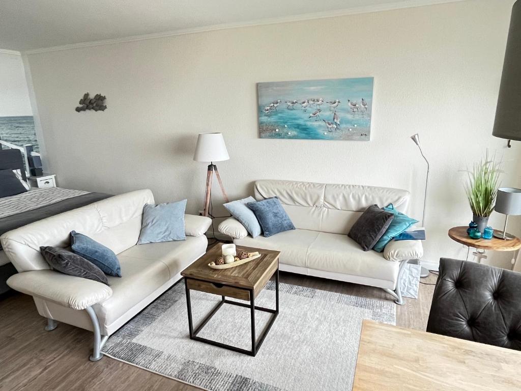 Unsere gemütlich eingerichtete Ferienwohnung befindet sich im 2. OG, im Haus „Vier Jahreszeiten“ am Südstrand des Ostseeheilbades Großenbrode, einem der sonnenreichsten Gegenden Deutschlands. Die Wohnung verfügt über einen Wohnschlafraum, von dem Sie zu jeder Tages- und Nachtzeit den atemberaubenden Panorama-Meerblick genießen können und einem Schlafzimmer mit zwei Einzelbetten, welches insbesondere unsere kleinen Gäste zum Verweilen und Träumen einlädt. Des Weiteren befindet sich ein behagliches Badezimmer mit Dusche, eine große, helle Küchenzeile und ein geräumiger Einbauschrank in Ihrem Feriendomizil. Der große Südbalkon mit unglaublichem Meerblick gestaltet sich für Sie zu einem unvergesslichen Highlight - verbringen Sie dort Ihre Urlaubstage bei herrlichstem Sonnenschein und einem leckeren Glas Wein. Eine Wachmaschine und einen Trockner sind im Untergeschoss gegen Gebühr nutzbar. Ein Aufzug ist leider nicht vorhanden.