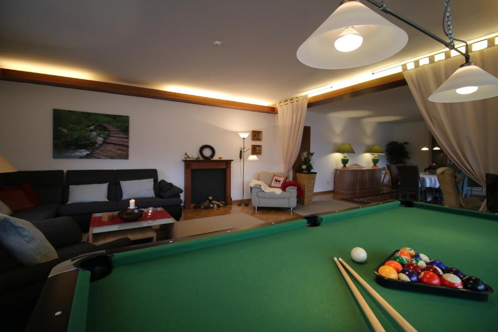 Liebe Gäste, 4****DTV. Unsere großzügige 150 qm, helle, sehr komfortable und gemütliche Ferienwohnung ist der richtige Ort für die schönste Zeit des Jahres – Ihren Urlaub! Wir haben unsere Schlafzimmer seit Juli 2019 neu gestaltet. Wir verfügen über ein neues Schlafzimmer mit einem Boxspringbett 180 x 200 cm und Babybett, eins mit einem Doppelbett 180 x 200 cm und roten Schlafsofa, 1 Schlafzimmer mit 2 Einzelbetten 90 x 200 cm und einem blauen Schlafsofa für 2 Personen. Das helle Wohn-/Esszimmer hat Sitzmöglichkeiten für 8 Personen und ist mit vielen Annehmlichkeiten, wie Hifi-Kompaktanlage mit iPhone-/iPod-Dock, Flachbild-TV, DVD-Player, Playstation und Billardtisch ausgestattet. Benötigen Sie einen Kinderhochstuhl, stellen wir Ihnen diesen gern nach vorheriger Absprache zur Verfügung. Wir haben eine Billardtisch. Die „Kuschelzone“ – das Elternschlafzimmer- erwartet Sie mit einem Doppelbett und Einbauschränken mit viel Platz für Ihre Bekleidung. Im angrenzenden Wintergarten/ Kinderzimmer befinden sich zwei weitere Einzelbetten und eine blaue Schlafcouch.