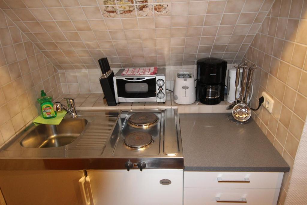 In der kleinen Küchenzeile können Sie heiße Getränke und kleine Speisen zubereiten und Ihre Lebensmittel aufbewahren. Mehrere Cafés und Restaurants servieren Ihnen 500 m von der Ferienwohnung Boddenblick entfernt Spezialitäten aus der Region.