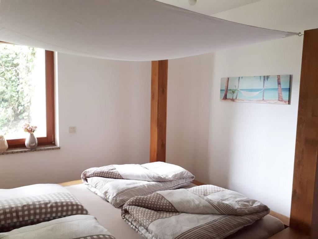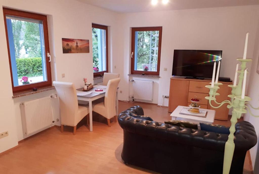 Unsere Ferienwohnung liegt in absolut ruhiger Wohnlage am Stadtrand und grenzt an Wald und Felder. Die Wohnung verfügt über einen separaten Eingang, Wohnzimmer mit Essbereich und Küchenzeile, Schlafzimmer und Duschbad. Im Außenbereich befinden sich Terrasse, Wiese und ein PKW-Stellplatz.