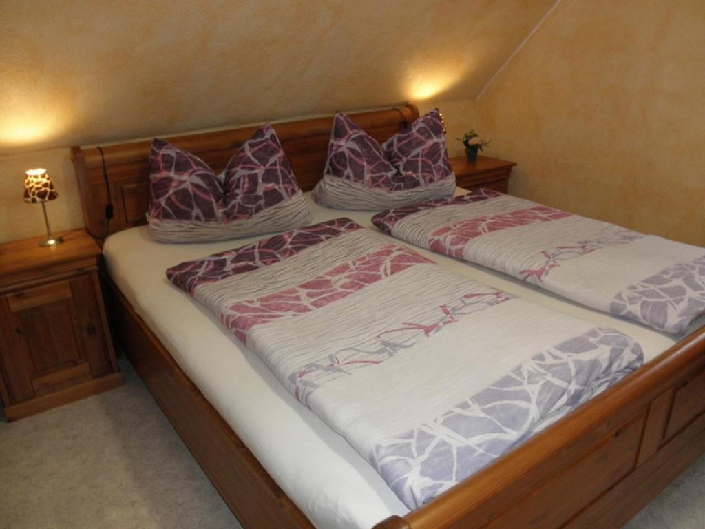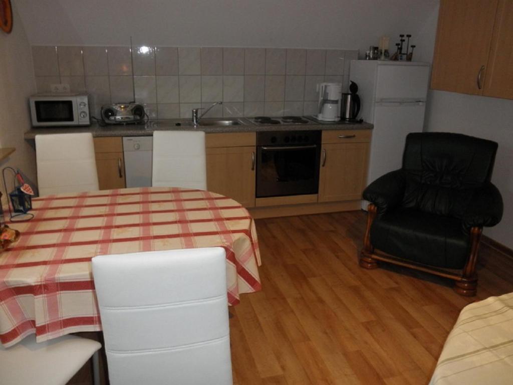 Es ist die Ferienwohnung "Charly", "klein aber mein" ca. 50 m². Sie befindet sich in der 1. Etage, die für die Gäste allein zugänglich ist. In der Ferienwohnung befinden sich Küche und Wohnen in einem Zimmer (vollständig ausgestattet), mit Fernseher, Radio, Mikrowelle, großem Kühlschrank, Toaster, Backofen, Kaffeemaschine, Wasserkocher usw. Ferner verfügt die Ferienwohnung über 2 Schlafzimmer mit 4 Betten sowie einem Badezimmer mit Dusche. Die Gäste sind von der Größe der Ferienwohnung beeindruckt, wenn sie diese betreten, da es von außen nicht so ersichtlich ist.