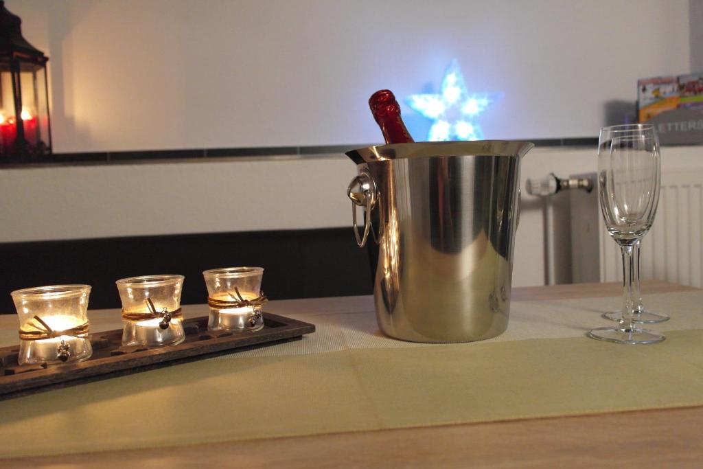 Unsere 2- Zimmer- Ferienwohnung hat eine Wohnfläche von ca. 65m² und bietet Ihnen folgende Ausstattung: - Sonniger Wintergarten in Südausrichtung mit gemütlicher Essecke - Wohnzimmer mit Wohnlandschaft, Stereoanlage, LED-TV mit SAT- Anschluss, Blu- Ray / DVD- Player (Bereitstellung einer PS3) - Moderne Einbauküche mit Backofen und Cerankochfeld, Mikrowelle, Spülmaschine und diverse elektrische Küchengeräte wie z.B. Kaffeemaschine, Toaster, Wasserkocher für Ihren täglichen Bedarf - Schlafzimmer mit gemütlichem (2,0 m x 2,0 m) Doppelbett als Boxspringbett, großem Kleiderschrank und LED-TV mit SAT- Anschluss - Luxuriöses Bad mit bodengleicher Dusche, Doppelwaschtisch und Waschmaschine inkl. Wäschetrockner zu Ihrer alleinigen Nutzung - Separater Abstellraum für Reinigungsartikel und Ihre Gepäckstücke - Teilüberdachte, große Sonnenterrasse - Großer Gartenanteil - Eigener Carport in direkter Nähe zum Wohnungseingang - Kostenlose WLAN- Nutzung - 4**** Sterne- Klassifizierung nach DTV