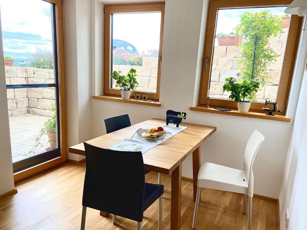 Moderne, offen gestaltete Ferienwohnung im Untergeschoß eines schönen Einfamilien-Wohnhauses mit separatem Eingang, eigener mediterran gestalteter Terrasse und PKW-Stellplatz. Die neue Wohnung hat eine Fläche von 62 m2 und verfügt über ein Schlafzimmer mit zwei Einzelbetten, die auch auf Wunsch zusammengestellt werden können, Kleiderschrank und Kommode, sowie einem Badezimmer mit Waschbecken, WC und Dusche. Der große, lichtdurchflutete Wohnraum besteht aus einer kleinen Sitzecke mit bequemem Ledersofa und TV-Gerät, einer Essecke mit Zugang zur Terrasse, sowie einer großen, komplett ausgestatteten Küche mit Marken Einbaugeräten. Idyllisch gelegen in Maierhof bei Soyen mit traumhaftem Panoramablick bis hin zu den Alpen. Zu Fuß erreicht man eine Gaststätte mit Biergarten und einen gut sortierten Lebensmittelladen. Rad- und Spazierwege beginnen mehr oder weniger vor der Haustüre. Im Umkreis von nur 2km befinden sich ein Bioladen, eine Pizzeria, ein Metzger und Bäcker sowie ein Badesee.