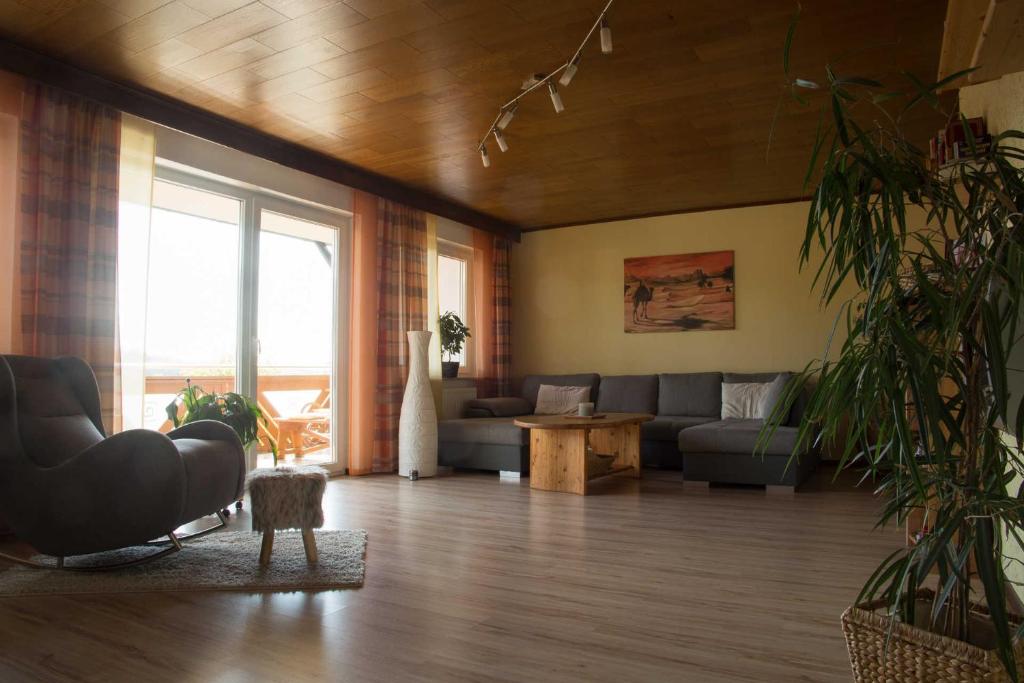 Herzlich Willkommen in unserer Ferienwohnung in sonniger Hanglage. Es erwartet Sie eine großzügige und liebevoll gestaltete Unterkunft mit 123 qm. Schon das Bad (mit Walk-in- Dusche und freistehender Badewanne) garantiert einen guten Start in den Tag. Weiterhin verfügt die Wohnung über zwei getrennte Schlafzimmer, ein sep. WC, ein großes, offenes Wohnzimmer mit Essecke im toskanischen Stil, Einbauküche, sowie einen Abstellraum. Wer gerade nicht zu einem der naheliegenden Ausflugsziele unterwegs ist, kann die Zeit auf einem der beiden Balkone (mit Grillmöglichkeit) oder in unserem Sauna-Blockhaus genießen.Zum Service einer 4-Sterne-Wohnung zählen selbstverständlich auch Geschirrspüler, Waschmaschine und WLAN (alles ohne Gebühr). Unser Ziel sind zufriedene Gäste. Deshalb lassen auch Sie sich verführen..... verführen zu einer guten Zeit im "Fränkischen Paradies"!