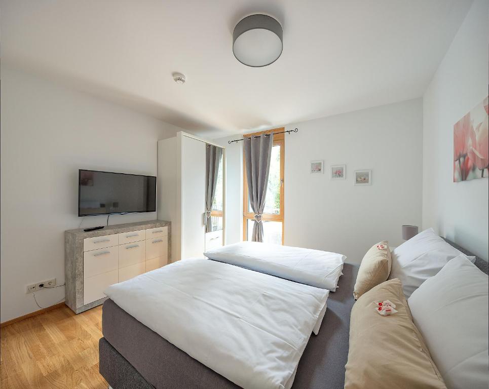 Das Apartment verfügt über 2 Schlafzimmer, 1 Bad, Bettwäsche, Handtücher, einen Flachbild-Kabel-TV, einen Essbereich, eine voll ausgestattete Küche und eine Terrasse mit Gartenblick.
