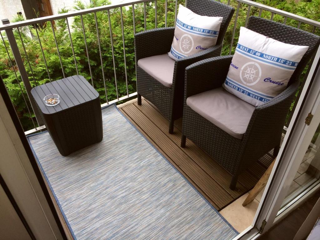 Das Apartment verfügt über 2 Schlafzimmer, 1 Bad, Bettwäsche, Handtücher, einen Flachbild-TV, einen Essbereich, eine voll ausgestattete Küche und einen Balkon mit Gartenblick.