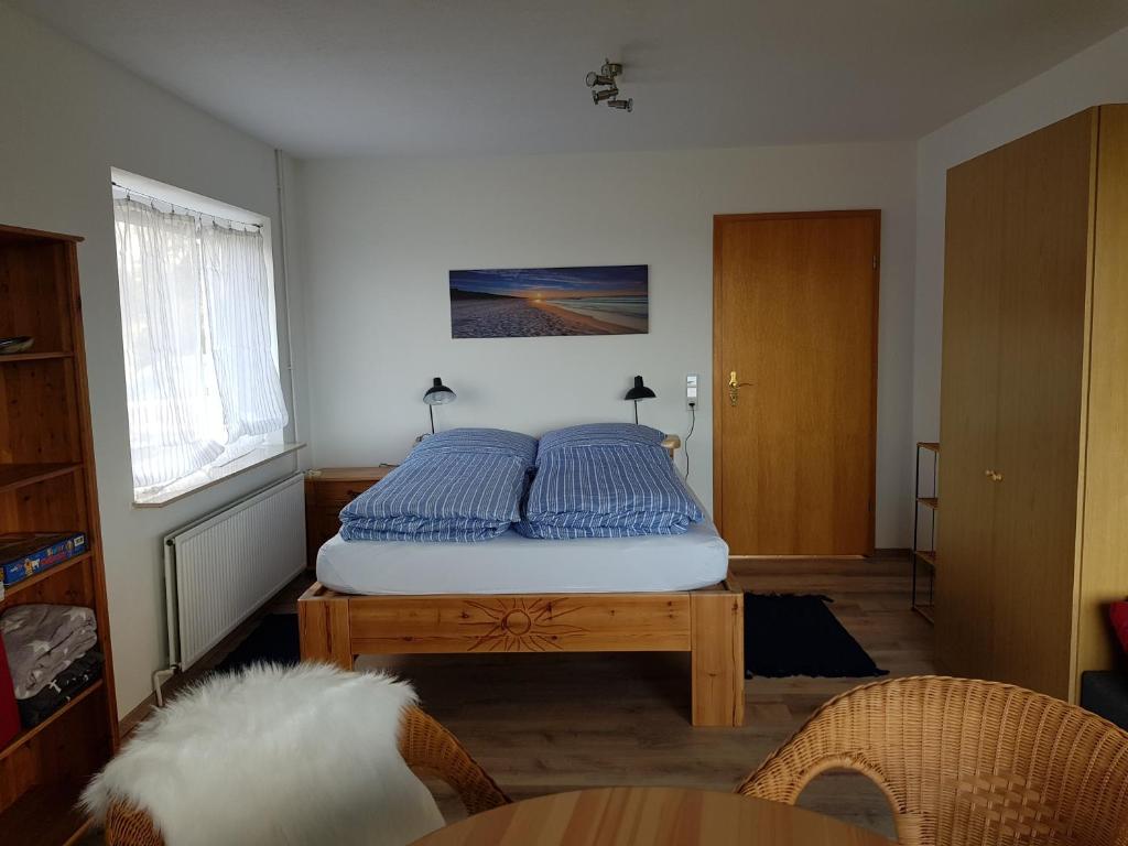 Das blaue Häuschen, eine Unterkunft mit einem Garten und einer Terrasse, begrüßt Sie in Westerholz, 550 m vom Strand Westerholz, 750 m vom Strand Lang
