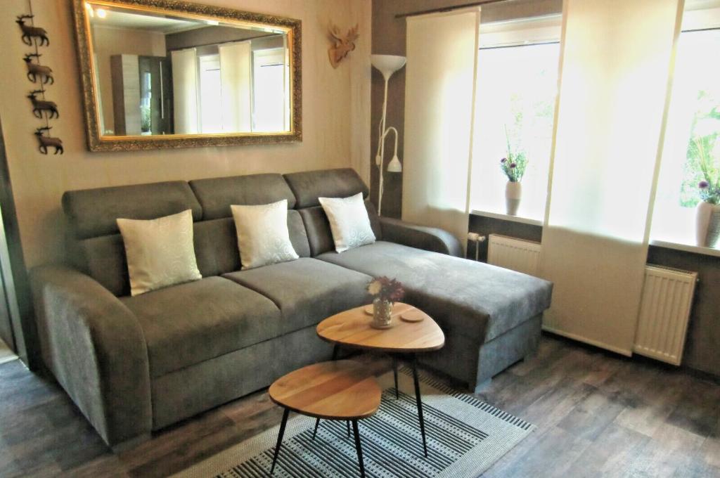 Liebe Gäste Die liebevoll eingerichtete Ferienwohnung befindet sich in der ersten Etage (eine Treppe, 14 Stufen) eines gemütlichen Hauses und hat eine Wohnfläche von ca. 60 m². Sie bietet Schlafmöglichkeiten für bis zu 4 Personen. Empfohlen für 3 Erwachsene und 1 Kind. 1 Schlafzimmer mit Doppelbett für 2 Personen, hochwertige Tellerlattenroste und rückenfreundliche Marken Matratzen (180x200cm.) Ein Wohnzimmer mit ausziehbarer Bettcouch/Schlafsofa (140x200 cm) für 1 - 2 Personen. Dieses Schlafsofa dient gleichzeitig auch als Sitzgelegenheit. Wlan Zugang Sat/LCD-TV Schlafzimmer 55 Zoll Smart-TV im Wohnzimmer, Spielekonsole PS 3 im Wohnzimmer. Bettwäsche wird 1x je Woche und Person frisch gestellt Handtücher/Duschtücher werden 1x je Woche und Person frisch gestellt. Die Wohnung ist rauchfrei! Rauchern steht aber ein kleiner französischer Steh-Balkon der an die Küche grenzt zur Verfügung. Ebenso ist das Rauchen unter dem Gartenpavillon, sowie im gesamten Außenbereich gestattet. Hund/Hunde sind kostenpflichtig und nicht im Buchungspreis enthalten, die Pauschale wird vor Ort fällig!!! Hunde sind nicht im Bett und auf den Möbeln gestattet. Das akzeptieren Sie mit Ihrer Buchung!
