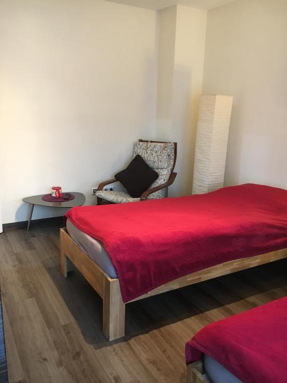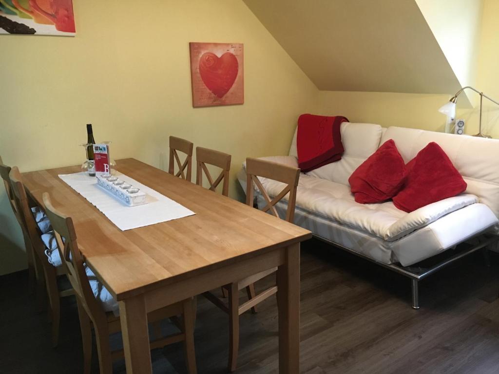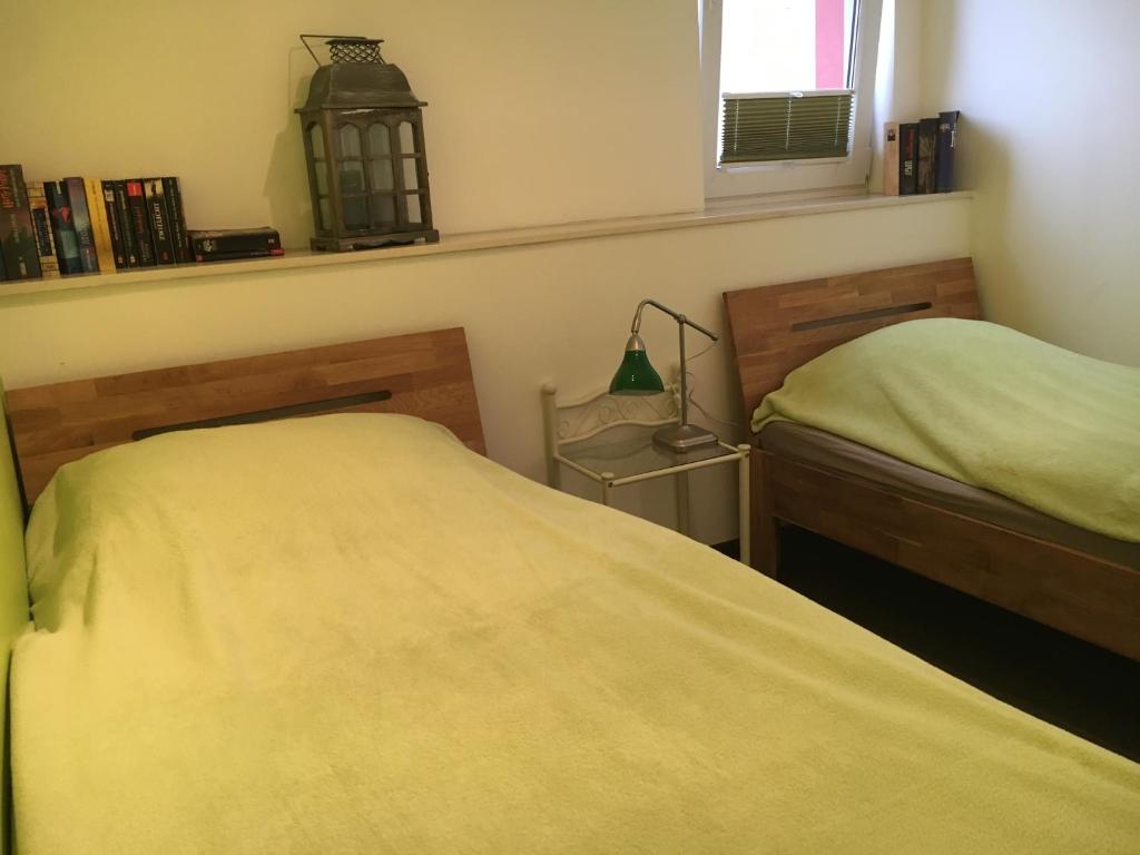 Die Ferienwohnung ist etwa 50qm groß, hat zwei Zimmer mit jeweils zwei Einzelbetten und einer etwas größeren Wohnküche und Badezimmer. In der Wohnung befinden sich eine voll ausgestattete Küche mit großer Essecke, Schlafsofa und Fernseher und ein sehr ansprechendes Badezimmer mit Dusche, Trockner und Waschmaschine. Ein Schlafzimmer hat ebenfalls einen Fernseher zur Verfügung. Durch die zentrale Lage der Wohnung erreicht man verschiedene Einkaufsmöglichkeiten fußläufig. Eine Bushaltestelle ist in der Nähe. Man ist in 2 min. auf der Schnellstraße und auf der Autobahn (A48)