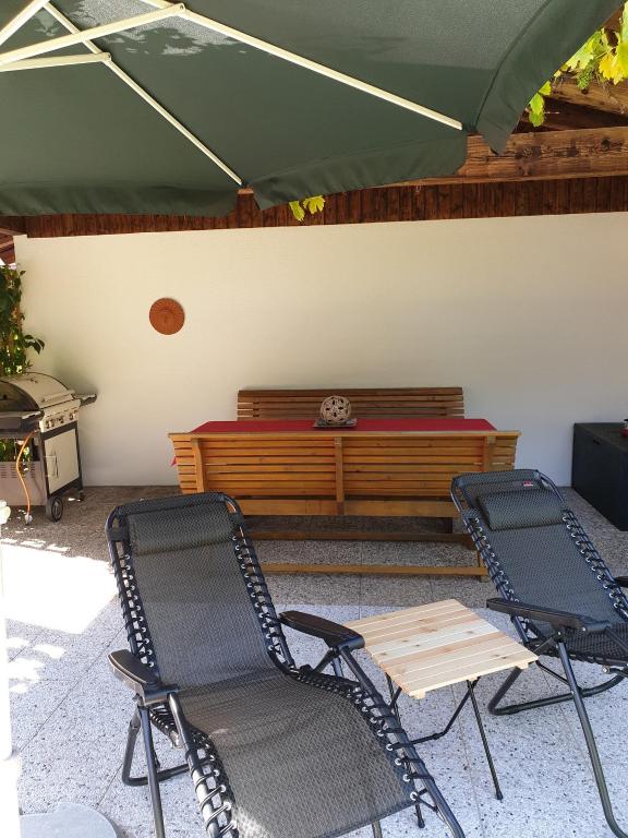 Die Ferienwohnung wurde 2020 komplett neu renoviert. Im Garten steht Ihnen ein großer Freisitz mit Tisch, Bänken, Komfort-Liegesessel und Hauben-Gasgrill zur Verfügung! Sie haben in der Wohnung und auch im Freisitz kostenlosen Zugang zu unserem schnellen WLAN-Anschluss der Telekom (Glasfaser-Leitung). Zusätzlich stehen Ihnen auch noch LAN-Anschlüsse in der Wohnung zur Verfügung. Wir haben sehr auf die Hochwertigkeit (z.B. hygienische "Bio-Böden") und Nachhaltigkeit bei der Auswahl der Baumaterialien und Einrichtung geachtet. Sie sollen sich einfach Wohlfühlen und Ihren Urlaub von Anfang an genießen können. Gerne können Sie auch den Freisitz mit Grillmöglichkeit nutzen, der für Sie exklusiv zur Verfügung steht. Er ist "bestückt" mit einem großen Tisch für 6 - 8 Personen. Ebenso vier Relax-Sessel mit Liegefunktion und zwei Klappstühlen. Für Ihr Grillvergnügen ist ein Gasgrill mit Gussplatten und separater Kochfläche vorhanden. Der Garten ist großzügig und entspannt durch viel "Grün".