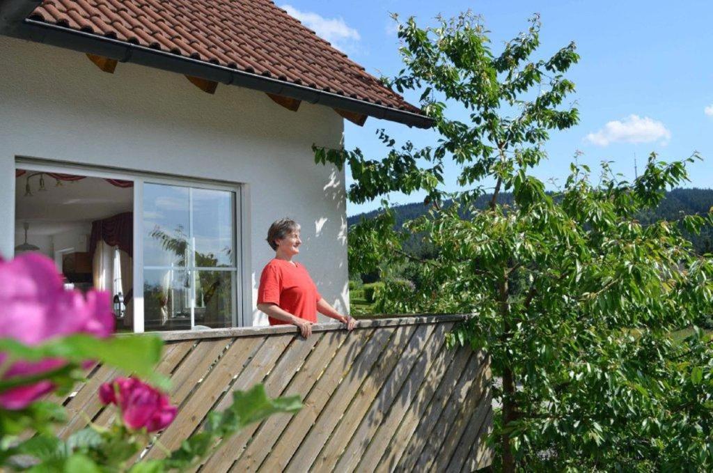 Die Terrasse an der Ferienwohnung Hopfennest lädt zum Verweilen ein.