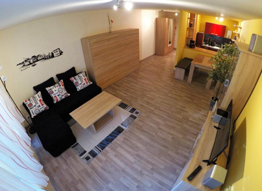 Ein Studio mitten in Kempten, nur wenige Gehminuten vom Zentrum, Altstadt u. Busbahnhof entfernt, zentral und doch ruhig und mit Wiese und Bäumen, eine Oase zum entspannen. Es bietet Platz für 2 Personen und ein Kind, ein Klappbett für 2Pers. und ein Gästebett für 1 Kind. Auch kann ein Reisebett für ein Kleinkind aufgestellt werden. Die Wohnung ist 44qm groß, hat ein Badezimmer mit Duschwanne und Toilette, eine Küche mit Kühlschrank, 2 Plattenherd, Mikrowelle mit Grillfunktion, Backofen, Kaffeemaschine, Toaster und Wasserkocher, sämtliches Geschirr, Töpfe und Besteck ist vorhanden. Eine Münzwaschmaschine und ein Trockner sind im Haus verfügbar. Im Wohn- Schlafzimmer ist ein Flachbild - TV und Radio - CD Player. Die Terrasse hat Gartenmöbel und einen Sonnenschirm. Keine Haustiere erlaubt, Nichtraucherwohnung.