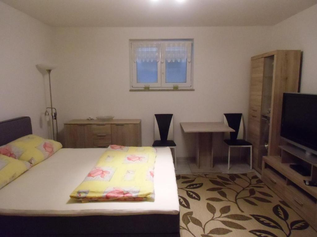 Das Zimmer mit gemanschafsbad hat 16 kw. m. befindet sich im Kellergeschos. Da sind 14 Stufen runter. Das Zimmer hat ein Fenster in der Lichtschaht und kein rihtiges Tageslicht.