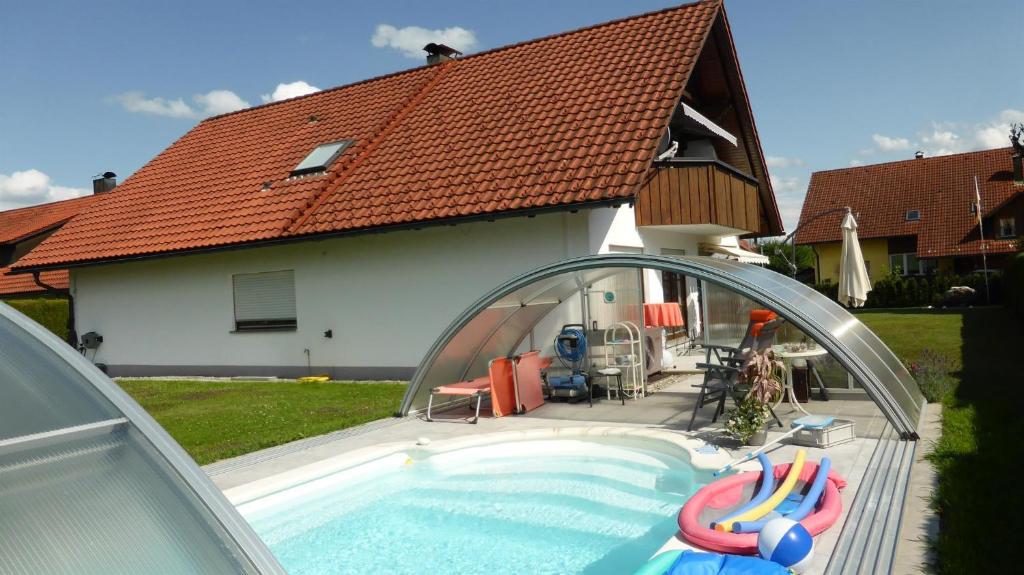 Herzlich Willkommen in Primisweiler, geniesen Sie ihren Urlaub in unserer 92 qm großen, komplett neu ausgestatteten und renovierten Ferienwohnung im 1.OG mit Balkon Highlight: saisonal betriebener,überdachter, beheizter/kühlbarer Salzwasserpool vom 1.Mai - 1. Okt. Gemeinschaftspool Der ideale Ausgangspunkt für Rad- und Wandertouren, Skifahren, Langlauf und Ausflüge ins Allgäu, an den Bodensee, die Alpen, oder ins „Dreiländereck“. Umgeben von Wäldern, Wiesen und einem Naturbadesee, nur 7 Km von Wangen und 16 Km von Lindau entfernt. Infos / Sehenswürdigkeiten in der Umgebung unter www.wangen.d