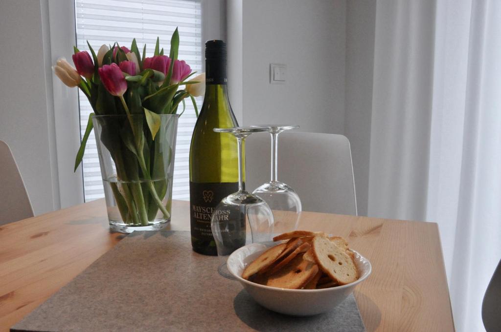 Die Ferienwohnung Landskroner Blick begrüßt Sie im ruhigen und wunderschönen Ahrtal (Ortsteil Gimmigen), ca. 2 km vom Bad Neuenahrer Stadt-Zentrum entfernt und bietet Ihnen kostenfreies WLAN. Die Unterkunft umfasst einen Wohnbereich mit Küchenzeile sowie ein separates Schlafzimmer und separates Badezimmer. Die Ferienwohnung ist attraktiv und modern eingerichtet und verfügt über einen Flachbildschirm-Fernseher. Sie befindet sich in einer idealen Lage für Radfahrer und Wanderer. Den Rotweinwanderweg, AhrSteig oder die schönen Radwege an der Ahr entlang, erreichen Sie nach weniger als 1 km von der Unterkunft. In der Nähe finden Sie auch einen Golfplatz (3 km). Bäckerei, Metzgerei und Lebensmittelmärkte sind in unmittelbarer Nähe. Die historische Altstadt von Ahrweiler liegt nur 6 km von der Unterkunft entfernt. Die Autobahn A61 erreichen Sie in weniger als 5 Autominuten. Die Parkplätze an der Unterkunft nutzen Sie kostenfrei. Auch die Bahnanbindung zur Unterkunft ist durch eine nahegelegenen Bahnhaltestelle (Heimersheim) in 1, 7 km Entfernung gewährleistet und ist gut zu Fuß zu erreichen.