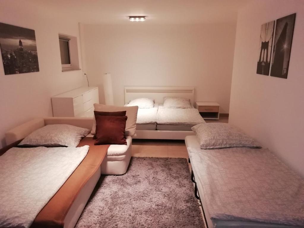 •Die Ferienwohnung Loachwiesen befindet sich in Ohmenheim einem Teilort der Stadt Neresheim. Sie finden die Ferienwohnung in ruhiger Lage in einer Wohnsiedlung. In nur 3km Entfernung finden Sie da das sehenswerte Kloster Neresheim und das Härtsfeldbahnmuseum, wo Sie auch in die Museumsbahn einsteigen können. Die Gegend ist bei Radwanderern sehr beliebt und lockt mit einem gut ausgebauten Radwegenetz. neue 2 Zimmer Wohnung für 1-4 Personen mit separatem Eingang (Größe 46 m²) Wohn- und Schlafraum ausgestattete Küche mit Esstisch (Kaffeepadmaschine, Kühlschrank mit Gefrierfach, Wasserkocher) Badezimmer mit Dusche und WC, Fön Bettwäsche und Handtücher verfügbar Fußbodenheizung Wlan verfügbar Doppelbett 1,80 m breit und Schlafcouch 1,40 m breit und Zustellbett 0,90m breit Kinderbett nach Absprache verfügbar Waschmaschine nach Absprache nutzbar vorhanden Stellplatz für PKW auf Grundstück. ruhige Lage keine Haustiere, Nichtraucherwohnung