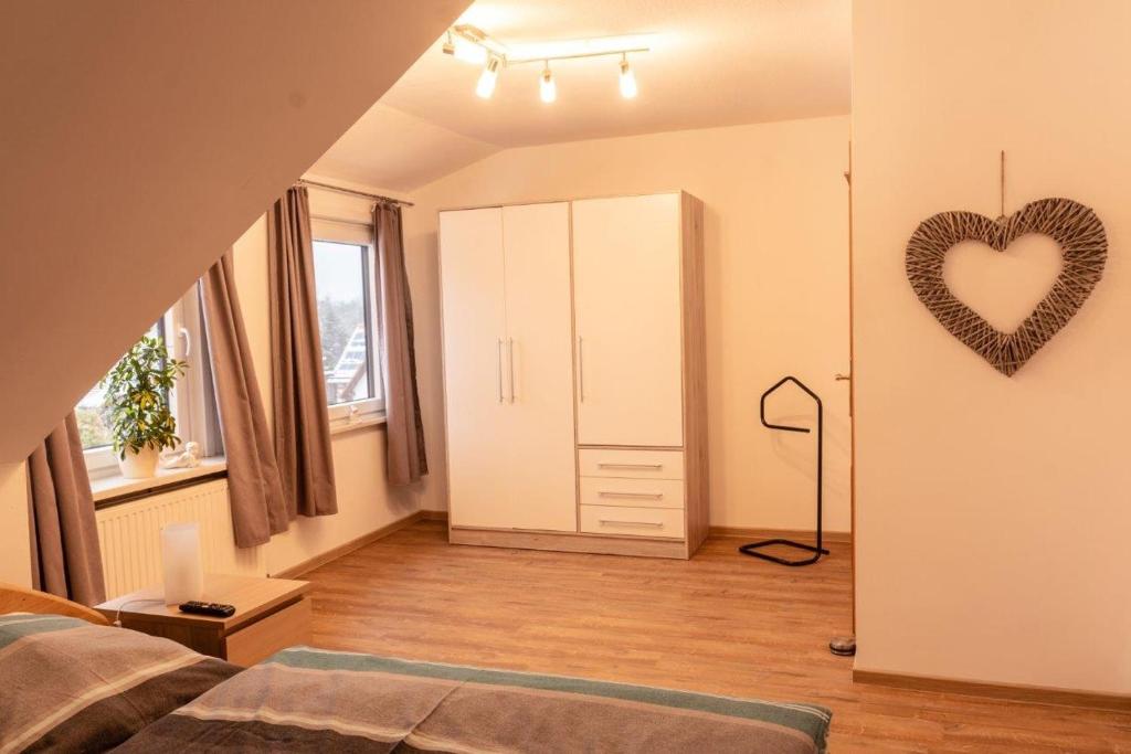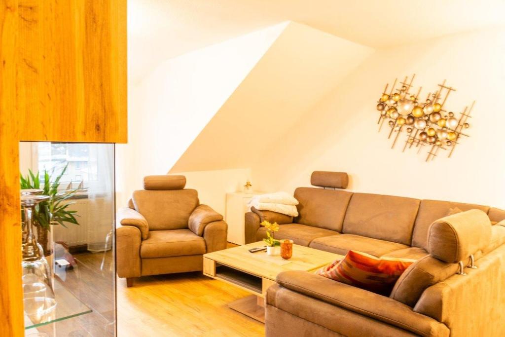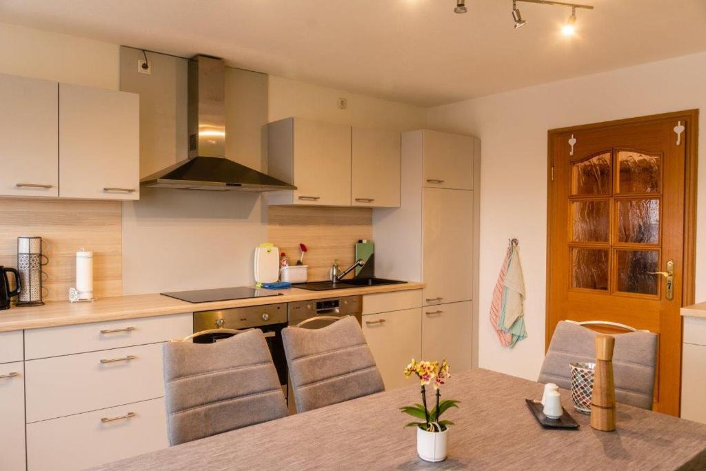 Die Ferienwohnung Probst liegt am Rand des Harzes und bietet Platz für bis zu 4-5 Personen. Die 89m² große Ferienwohnung Probst wurde 2020 renoviert und begeistert durch eine hochwertige Innenausstattung. Die Ferienwohnung verfügt über zwei Schlafzimmer mit je einem Doppelbett. Das Wohnzimmer verfügt über ein gemütliches Sofa, welches bei Bedarf noch 2 weiteren Personen einen Schlafplatz bietet, und einen 65“ Flachbild-TV. Die Küche bietet Backofen, Induktionskochfeld, Mikrowelle, Kühlschrank mit Gefrierfach, sowie einen Geschirrspüler. Das komfortable, moderne Badezimmer mit Dusche und WC wurde 2020 renoviert. Im Schlafzimmer gibt es ebenfalls einen großen Flachbild-TV. Die Ferienwohnung ist mit WLAN ausgestattet. Zu dieser Wohnung gehören noch ein KFZ-Einstellplatz und ein großer Garten wo eine Grillmöglichkeit vorhanden wäre.