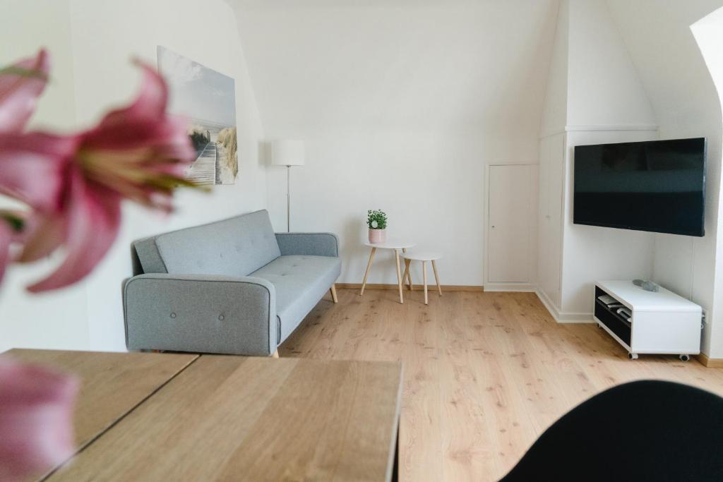 Die Unterkunft Gemütliche Ferienwohnung mit Charm erwartet Sie mit einem Garten und einer Terrasse in Friedrichshafen, 2,2 km vom Messegelände Friedri