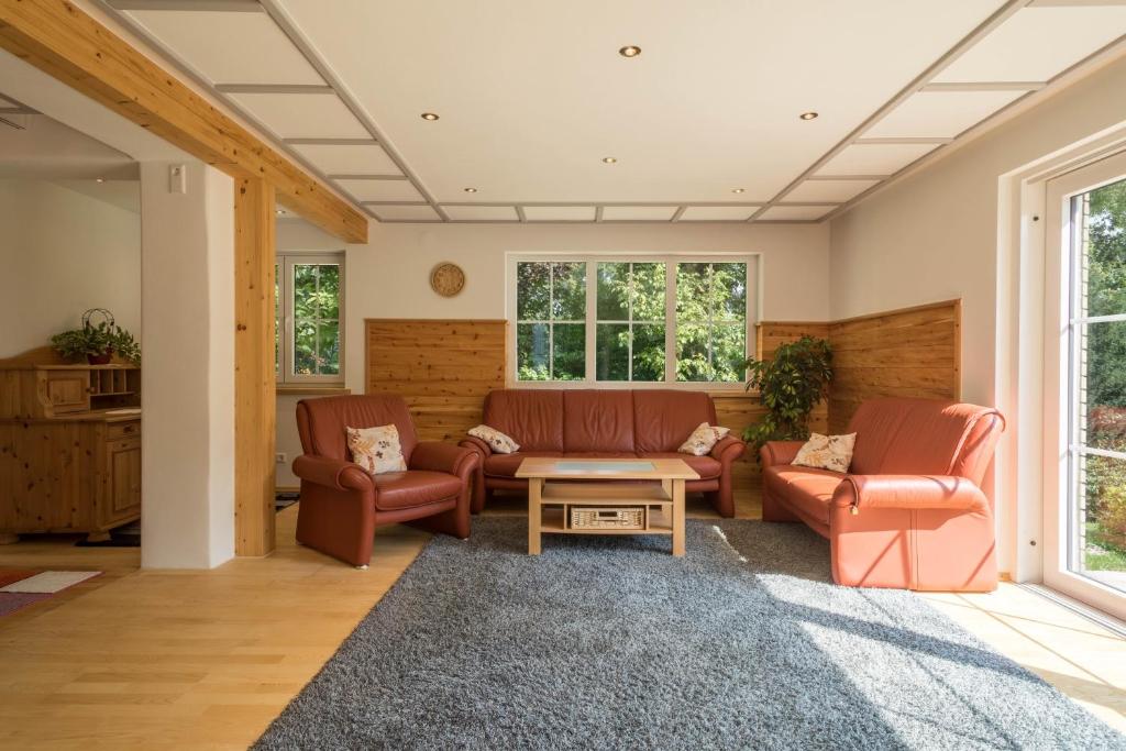 Die gemütliche Ferienwohnung Rief befindet sich in Neukirch, einem kleinen Dorf zwischen Friedrichshafen und Lindau, und ist ideal für Aktivurlaub in der Nähe des Bodensees. Die 80 m² große Wohnung im Erdgeschoss besteht aus einem Wohnzimmer, einer gut ausgestatteten Küche mit Geschirrspüler, 2 Schlafzimmern (eines davon ist ein Kinderzimmer mit Etagenbett) sowie einem stilvollen Bad und bietet somit Platz für 4 Personen. Zu den weiteren Annehmlichkeiten gehören WLAN und Satellitenfernsehen. Der private Außenbereich verfügt über eine überdachte Terrasse mit Sitzmöbeln, wo Sie den Tag mit einem Frühstück beginnen oder die Abende bei einem Glas Wein mit Blick auf den Garten und den Teich verbringen können. Außerdem gibt es Tischtennis für lustige Nachmittage. Ein Supermarkt, Geldautomaten und ein Restaurant sind zu Fuß innerhalb von 5 Minuten (450 m) von der Wohnung aus erreichbar, und eine Bäckerei und eine Apotheke finden Sie nach 10 Autominuten (7 km) von Neuravensburg aus. Die Wälder und Seen in unmittelbarer Nähe laden zum Wandern, Radfahren und Schwimmen ein, und Sportfans finden im Umkreis von 20 Autominuten (15 km) vom Grundstück eine Vielzahl von Möglichkeiten wie Klettern, Skifahren oder Golfen. Der nächstgelegene Strand, an dem Sie im klaren, blauen Wasser des Bodensees baden können, mit herrlichem Blick auf die Schweizer Alpen im Hintergrund, liegt 20 Autominuten (16,7 km) entfernt, in Kressbronn. Das hübsche Zentrum von Friedrichshafen, 28 Autominuten (20,5 km) von Neukirch entfernt, lädt Sie ein, das Zeppelinmuseum zu besuchen, über die Seepromenaden zu schlendern und seine Strände zu erkunden. Darüber hinaus kann die charmante Stadt Bregenz in Österreich, die für ihr vielfältiges kulturelles Angebot bekannt ist, in 30 Autominuten oder 25 Minuten von Neukirch aus besucht werden. Parkplätze für Auto und Fahrräder stehen auf dem Grundstück zur Verfügung. Bettwäsche und Handtücher sind im Preis inbegriffen, ebenso wie die Endreinigung. Haustiere und Rauchen sind nicht erlaubt. Bitte füllen Sie das Bookiply Kontaktformular, das Ihnen per Email gesendet wurde, vollständig inklusive Ihrer Adresse aus. Damit helfen Sie dem Gastgeber Ihren Aufenthalt optimal vorzubereiten.