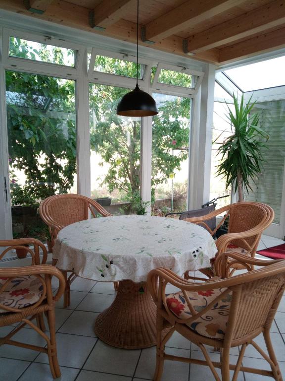 Nur 29 km von der Sehenswürdigkeit Hauptbahnhof Würzburg entfernt gelegen, bietet die Unterkunft Ferienwohnung Schwalbennest in Sommerach Zugang zu einem Garten, Wassersportmöglichkeiten sowie einen Geldautomaten. Diese Ferienwohnung besticht durch kostenlose Privatparkplätze und befindet sich in einer Gegend mit Möglichkeiten zum Wandern und Fahrradfahren. Diese Ferienwohnung mit einer Terrasse und Flussblick hat 2 Schlafzimmer, ein Wohnzimmer, einen Flachbild-TV, eine gut ausgestattete Küche mit einem Kühlschrank und einem Geschirrspüler sowie 1 Badezimmer mit einer Dusche. In dieser Ferienwohnung werden Handtücher und Bettwäsche angeboten. Die Sehenswürdigkeit Congress Centrum Würzburg liegt 29 km von der Unterkunft Ferienwohnung Schwalbennest entfernt, während die Sehenswürdigkeit Dom St. Kilian 30 km von der Unterkunft entfernt ist. Der nächstgelegene Flughafen ist der Flughafen Nürnberg, 86 km von der Unterkunft Ferienwohnung Schwalbennest entfernt.